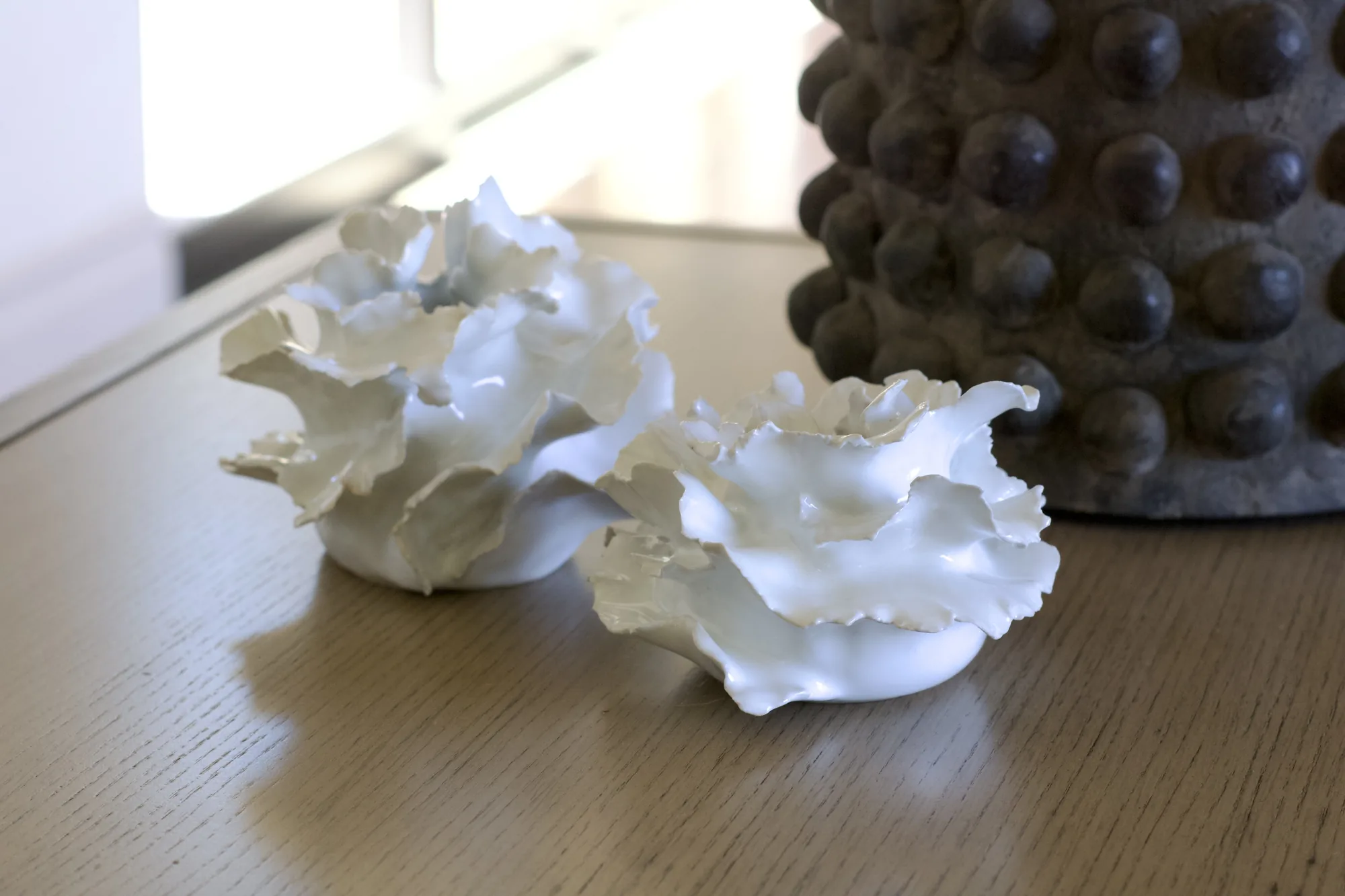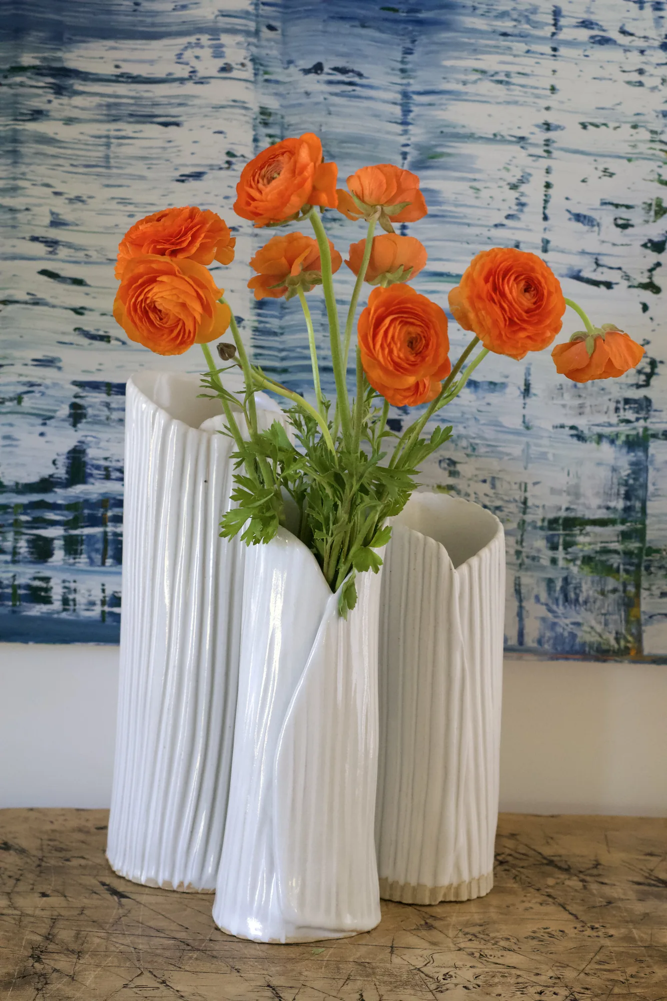 The most recent chapter of the studio, photographed in one session and released before the May 3 reveal. Jump to Spines, Fringe, Wrapped Vases, Moons, or Installations.